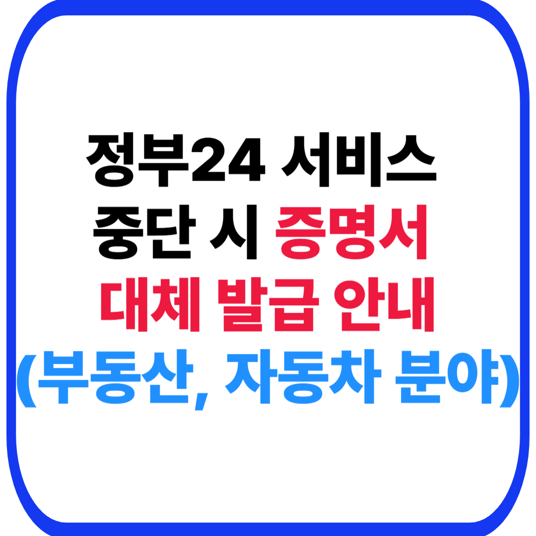 정부24 서비스가 중단되더라도, 위와 같은 대체 창구를 통해 대부분의 부동산·자동차 관련 증명서를 발급받을 수 있습니다.