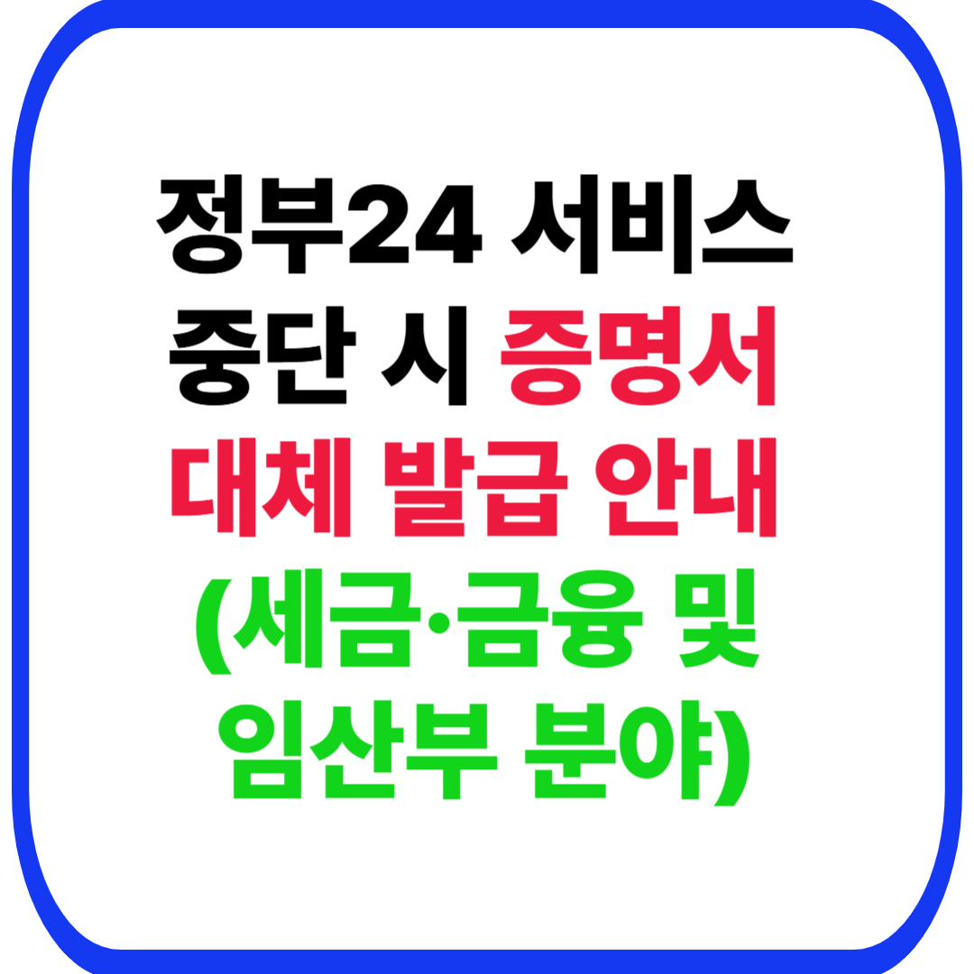 정부24 서비스 중단 시에도 위와 같은 대체 온라인 사이트와 오프라인 창구를 통해 대부분의 세금·금융 관련 증명서를 발급할 수 있습니다.